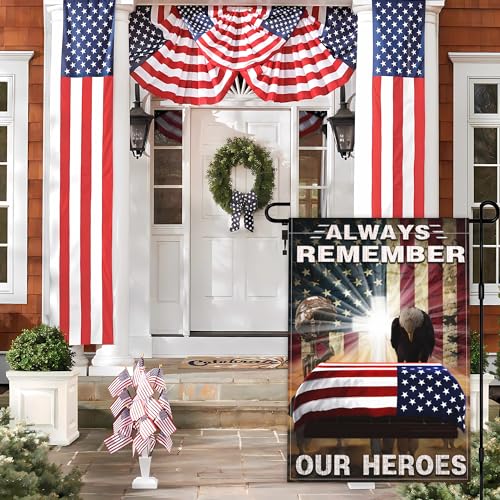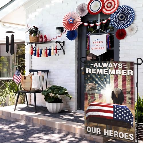 Always Remember Our Heroes Garden Flag 12×18 Inch Memorial Day Garden Flag 3ply Polyester Double Sided Print 4th of July Independence Day Veterans Day Garden Flags for House Indoor Yard Outdoor Holiday Patriotic Decor